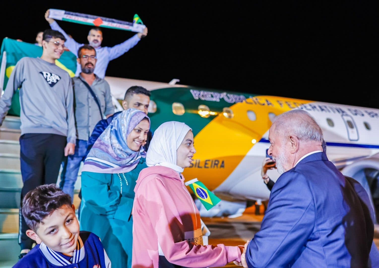 Ao receber o grupo de 32 brasileiros e familiares resgatados da Faixa de Gaza na Base Aérea de Brasília, no fim da noite de segunda-feira (13/11), o presidente Lula afirmou que o governo federal continuará tentando trazer ao País todos os brasileiros que quiserem sair da região do conflito entre Israel e Hamas e voltar para o Brasil ou, no caso de estrangeiros, acompanhar os parentes brasileiros.